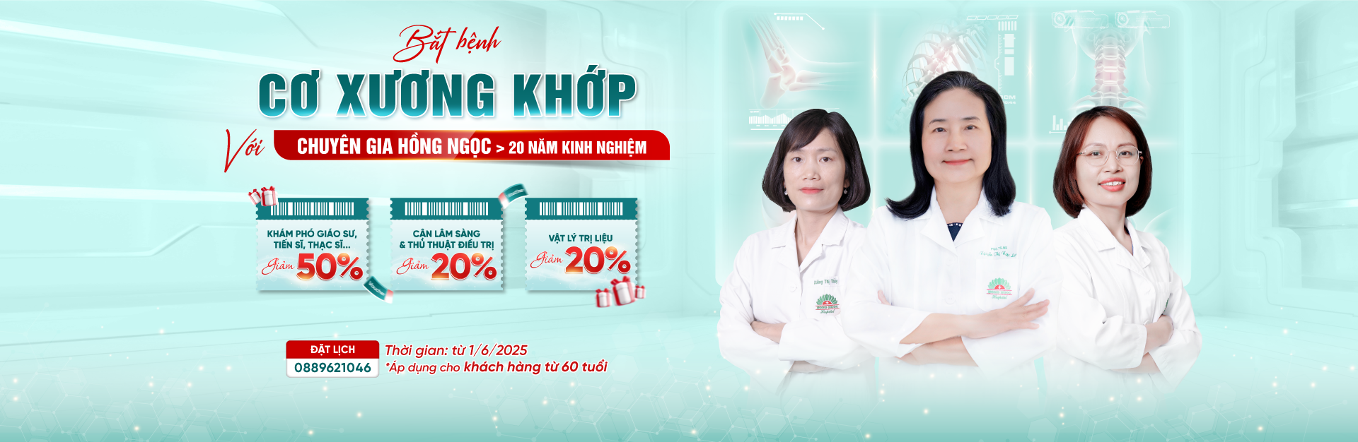 Chuyên khoa Cơ Xương Khớp, Bệnh viện Đa khoa Hồng Ngọc với 20 năm kinh nghiệm, thăm khám và điều trị các bệnh lý xương khớp cấp và mạn tính, quy tụ đội ngũ bác sĩ giàu kinh nghiệm, làm chủ các kỹ thuật hiện đại và phù hợp với từng tình trạng bệnh giúp tối ưu hóa quá trình khám chữa bệnh.