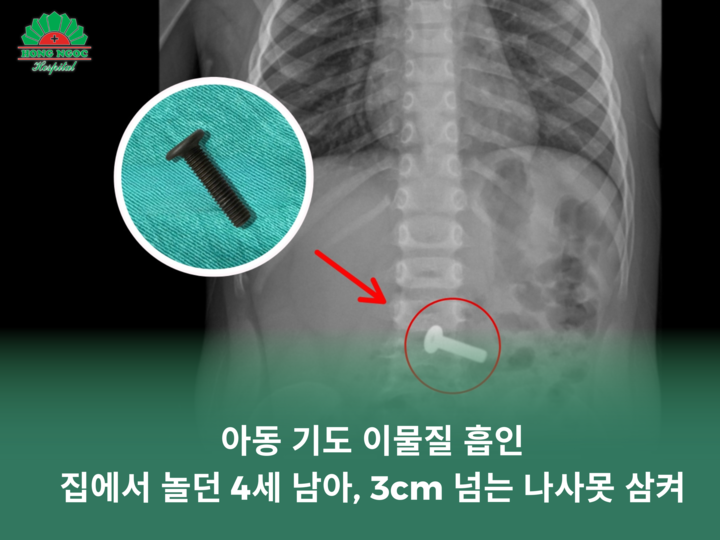 아동 기도 이물질 흡인: 집에서 놀던 4세 남아, 3cm 넘는 나사못 삼켜