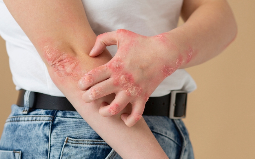 - Biểu hiện ngoài khớp: ban cánh bướm vùng mặt (lupus), móng tay bị lõm hoặc bong (viêm khớp vảy nến), đau yếu cơ (viêm đa cơ), tổn thương ruột.