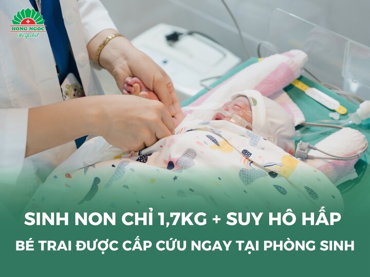 Chào đời ở tuần thai 32 với cân nặng chỉ 1,7kg, bé trai N.H.T đã được các bác sĩ tại Đơn nguyên Sơ sinh - BVĐK Hồng Ngọc Yên Ninh cấp cứu thành công trong tình trạng suy hô hấp nghiêm trọng ngay tại phòng sinh.