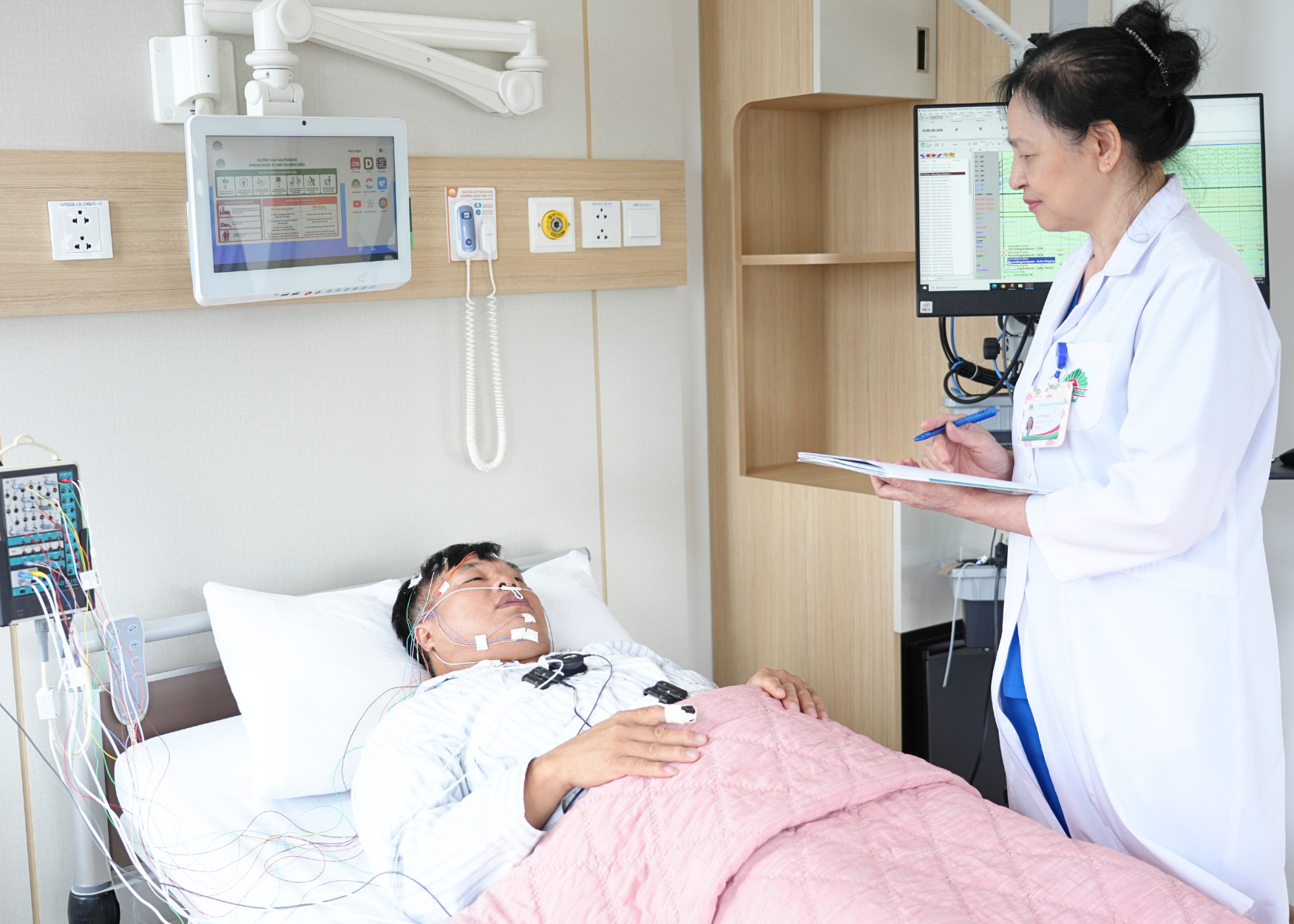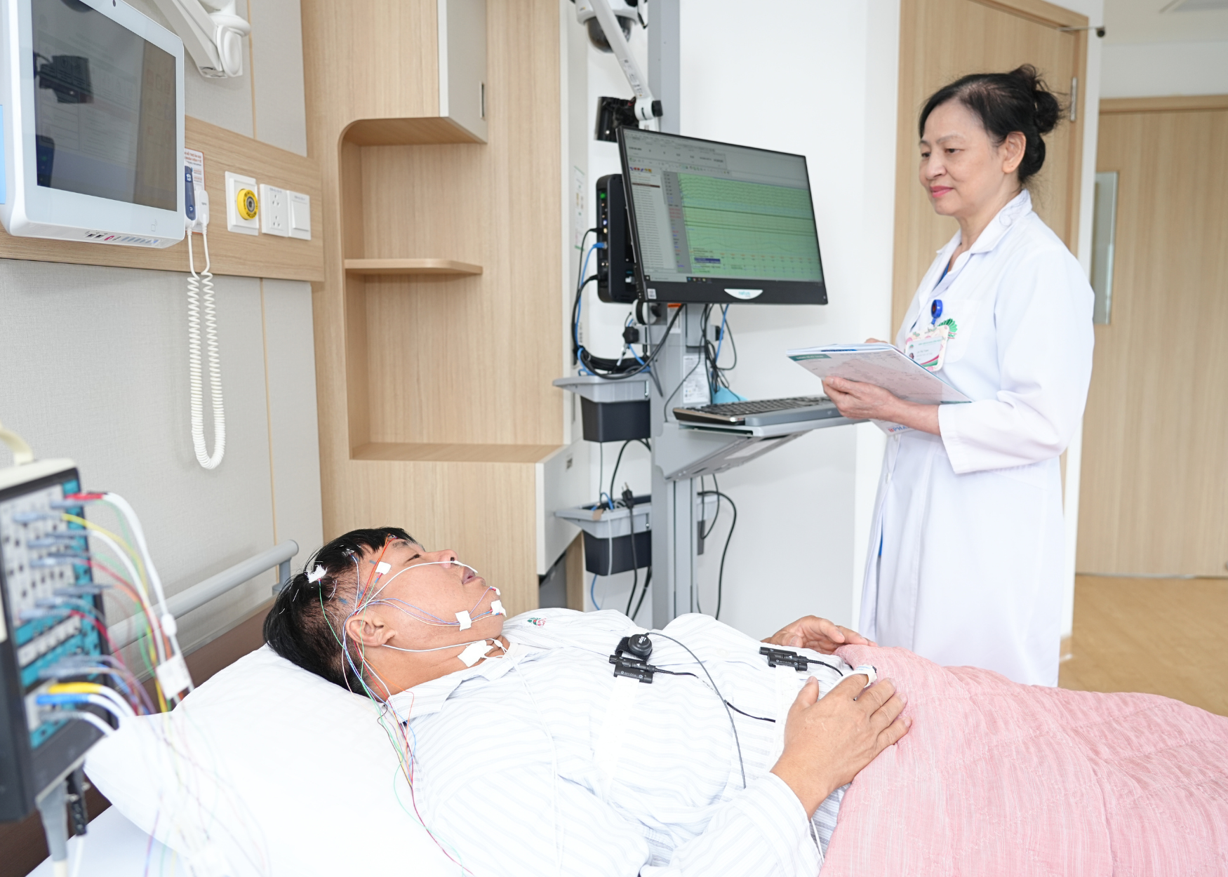 Người bệnh đo đa ký hô hấp tại không gian yên tĩnh, thoải mái, đủ tiện nghi tại BVĐK Hồng Ngọc