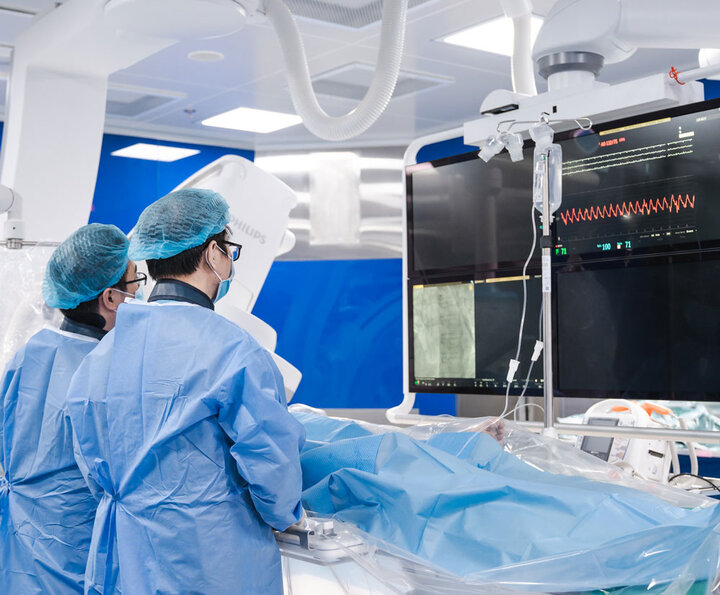 Điều trị can thiệp các bệnh lý tim mạch bằng các thủ thuật: đặt stent mạch vành, đốt suy giãn tĩnh mạch chi dưới bằng sóng cao tần RFA...
